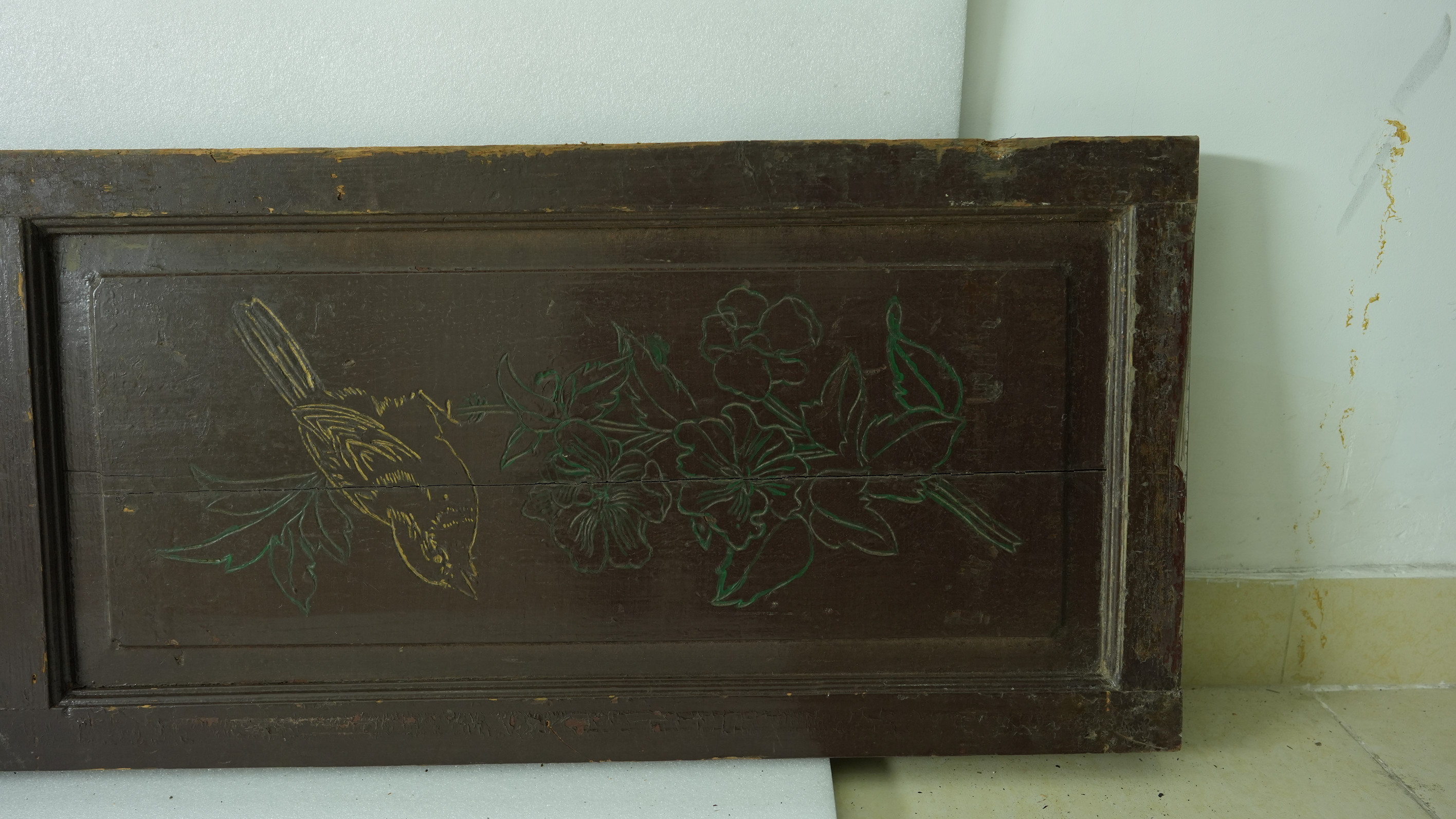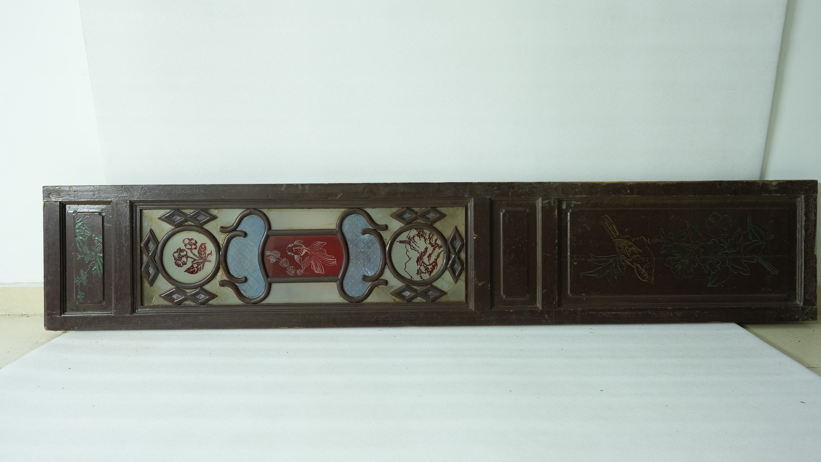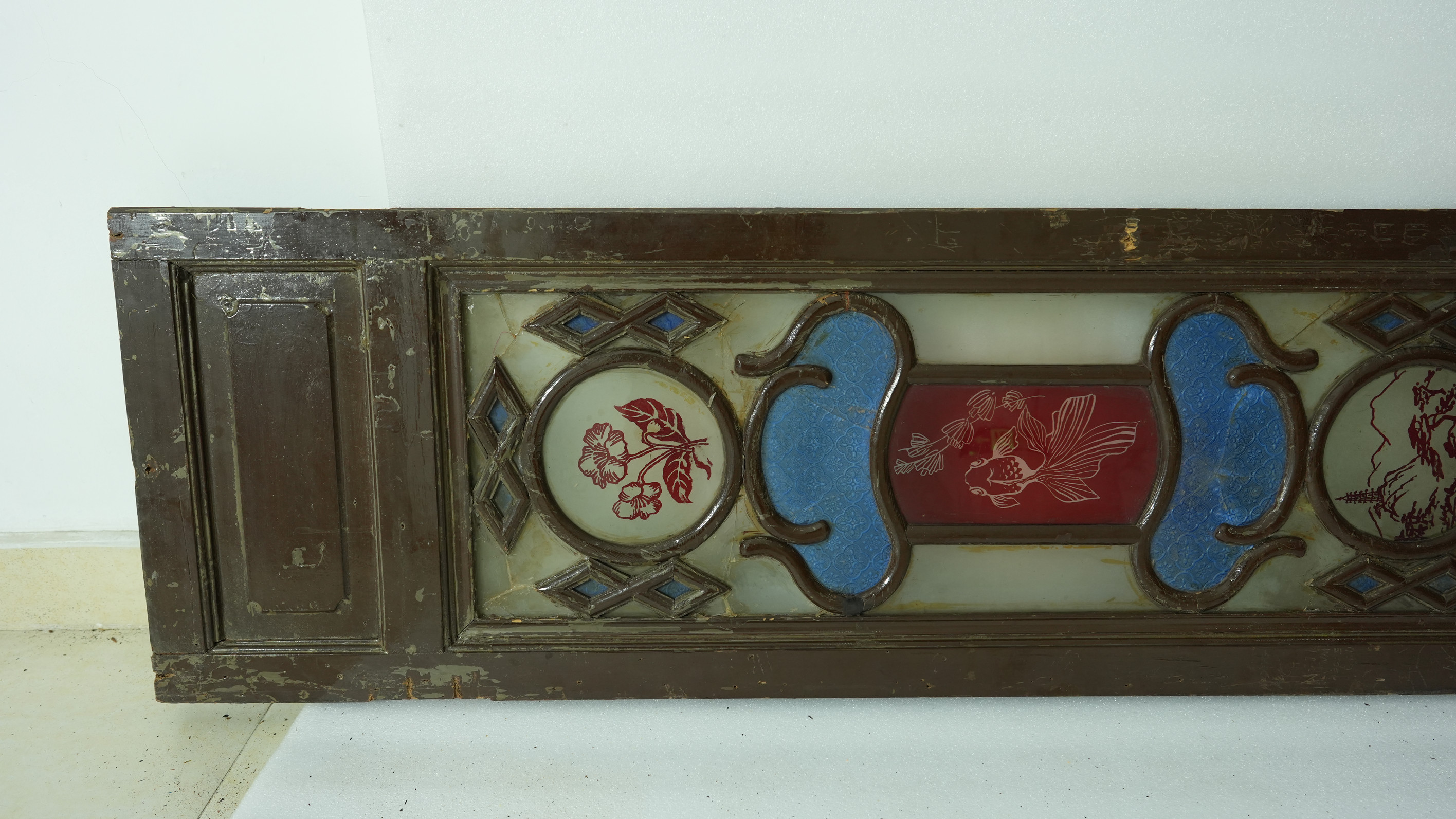 名称:当代满洲玻璃门 年代:当代 质地:木、玻璃 尺寸:长238.3cm,宽44.3cm,厚3.8cm