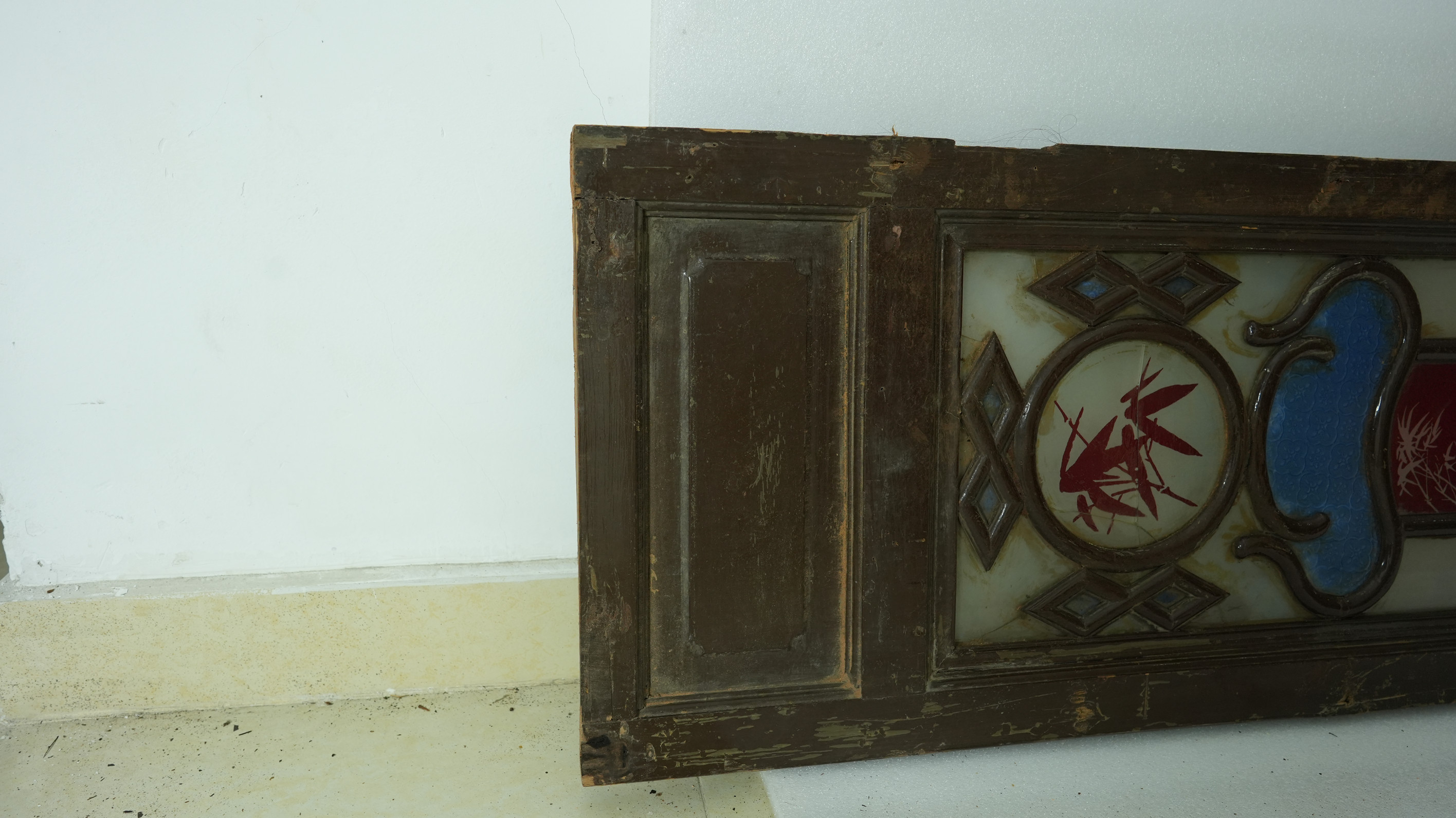 名称:当代满洲玻璃门 年代:当代 质地:木、玻璃 尺寸:长236.7cm,宽44.7cm,厚3.8cm