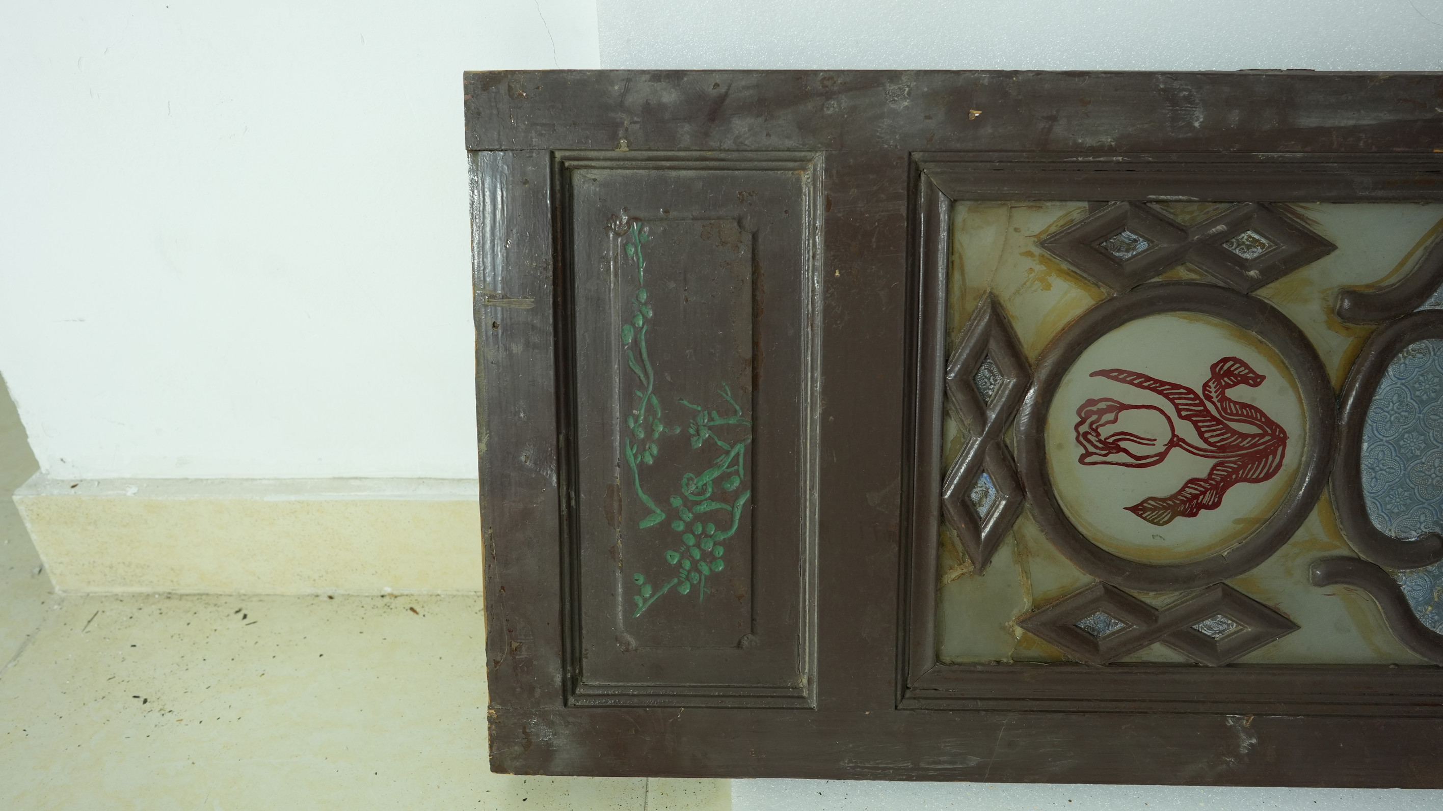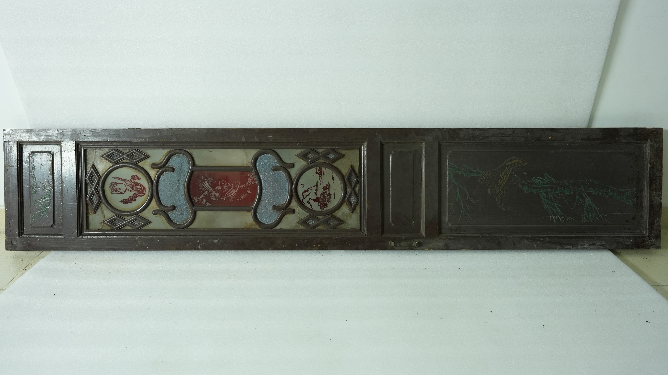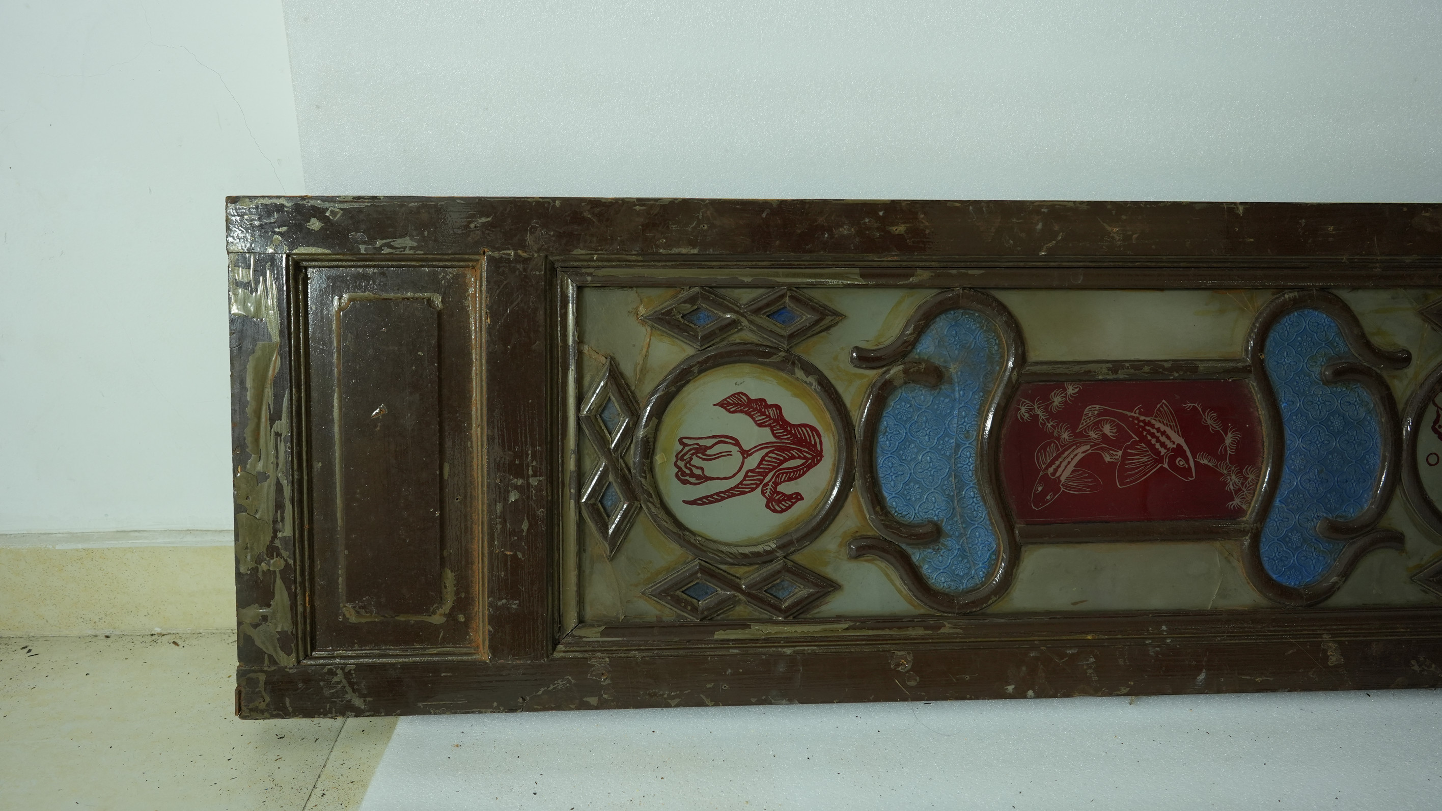 名称:当代满洲玻璃门 年代:当代 质地:木、玻璃 尺寸:长238.8cm,宽44.3cm,厚3.8cm