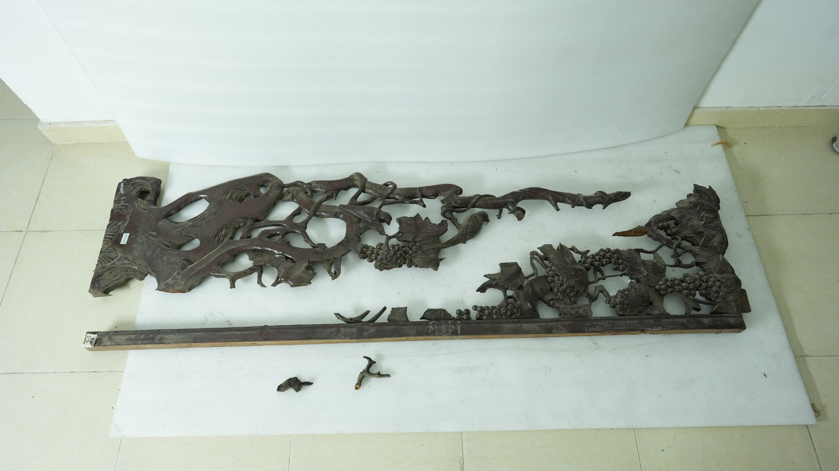 名称:当代木雕挂落 年代:当代 质地:木 尺寸:长207.3cm,宽51cm,厚8cm