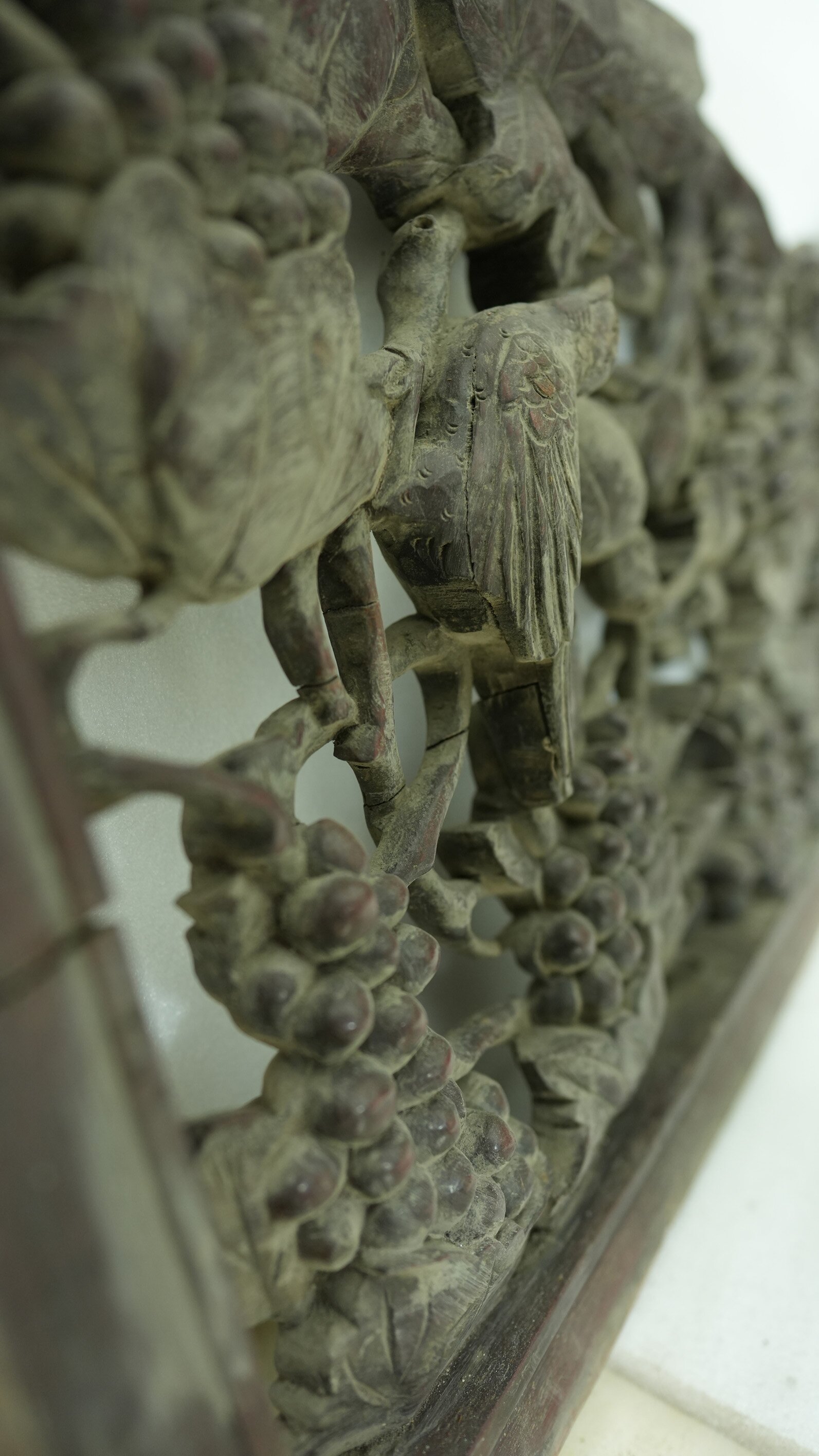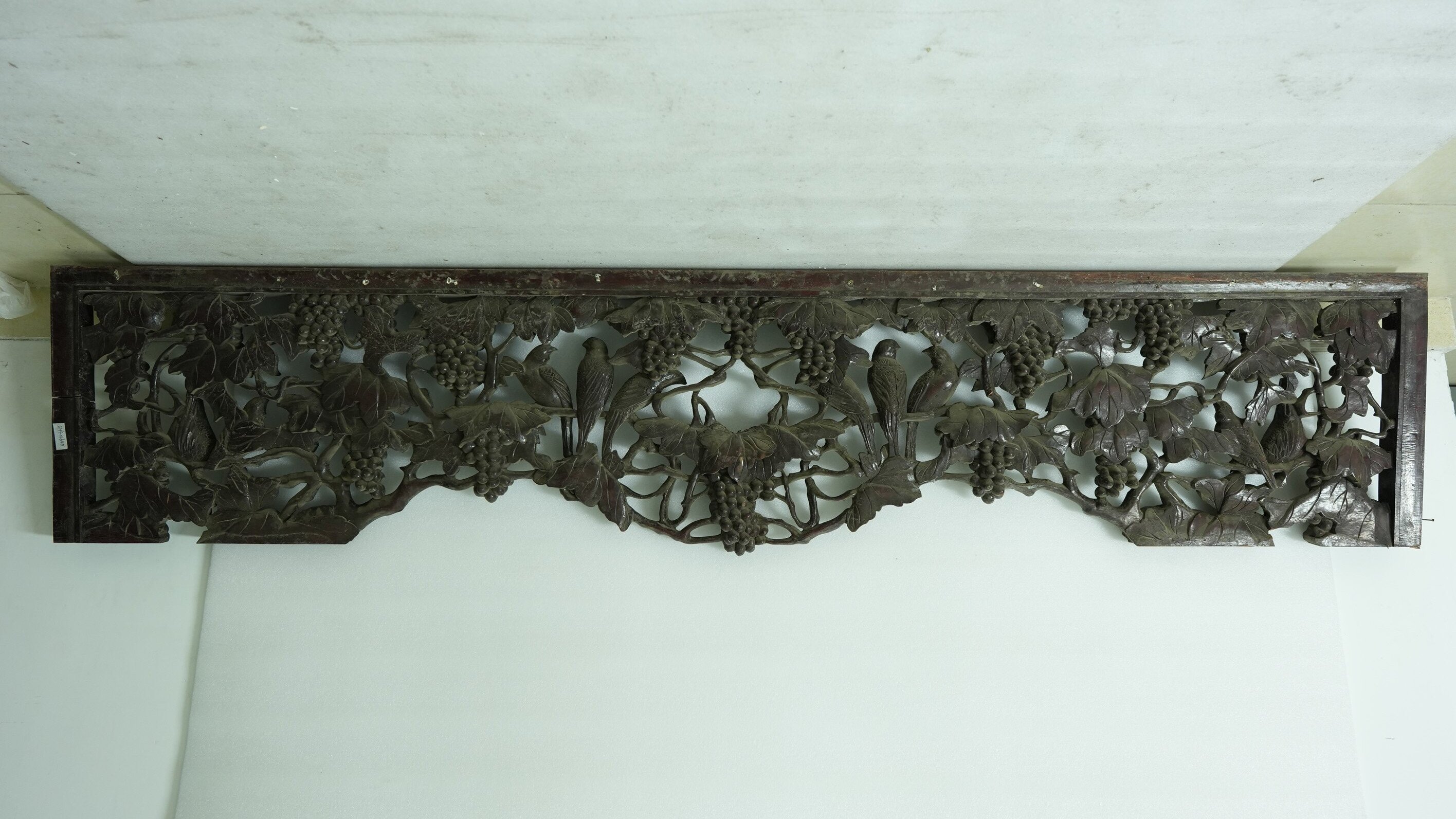 名称:当代木雕挂落 年代:当代 质地:木 尺寸:长245.6cm,宽49.8cm,厚4.5cm