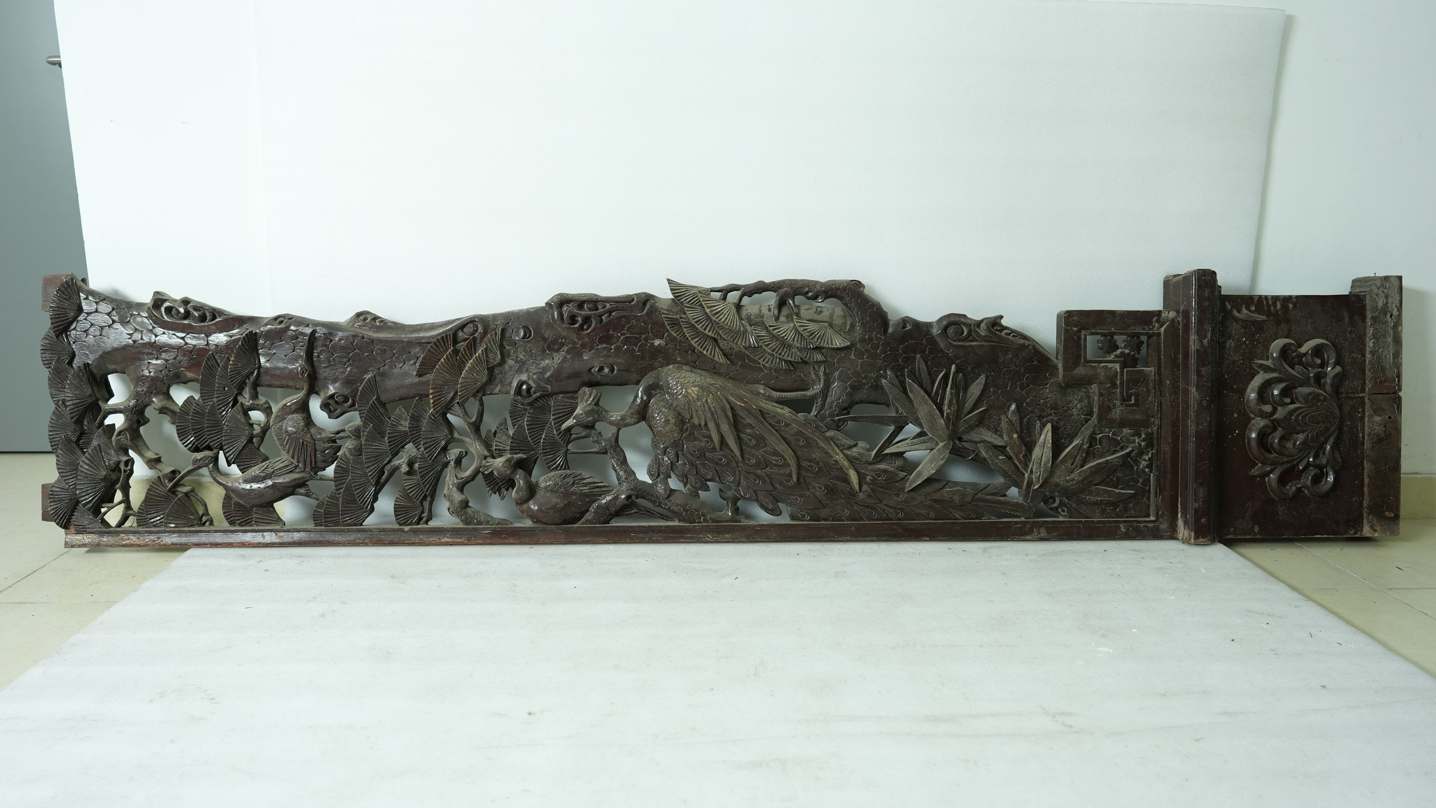 名称:当代木雕挂落 年代:当代 质地:木 尺寸:长274.3,宽54.8,厚12.6