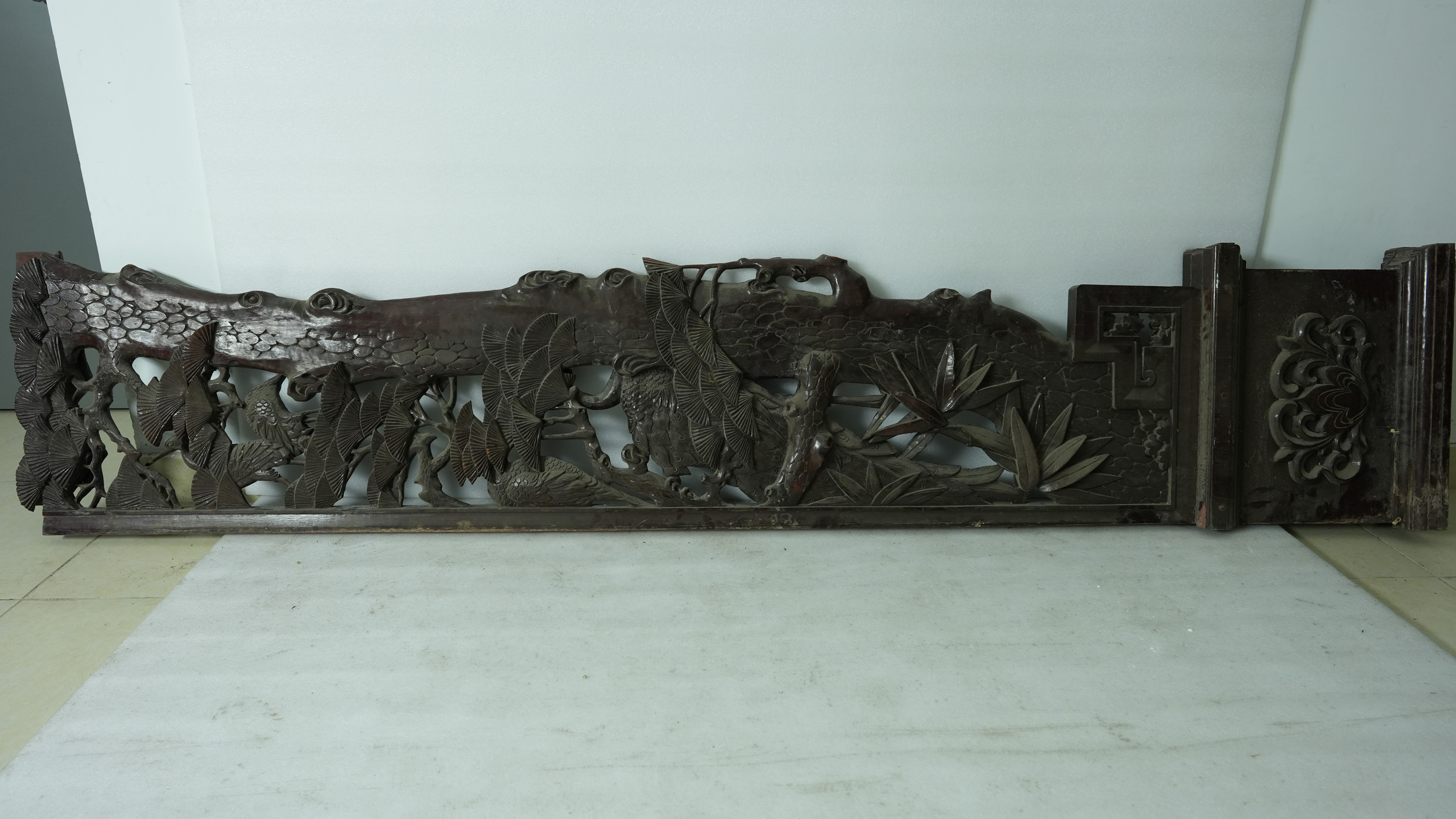 名称:当代木雕挂落 年代:当代 质地:木 尺寸:长273.8cm,宽55.5cm,厚12.7cm