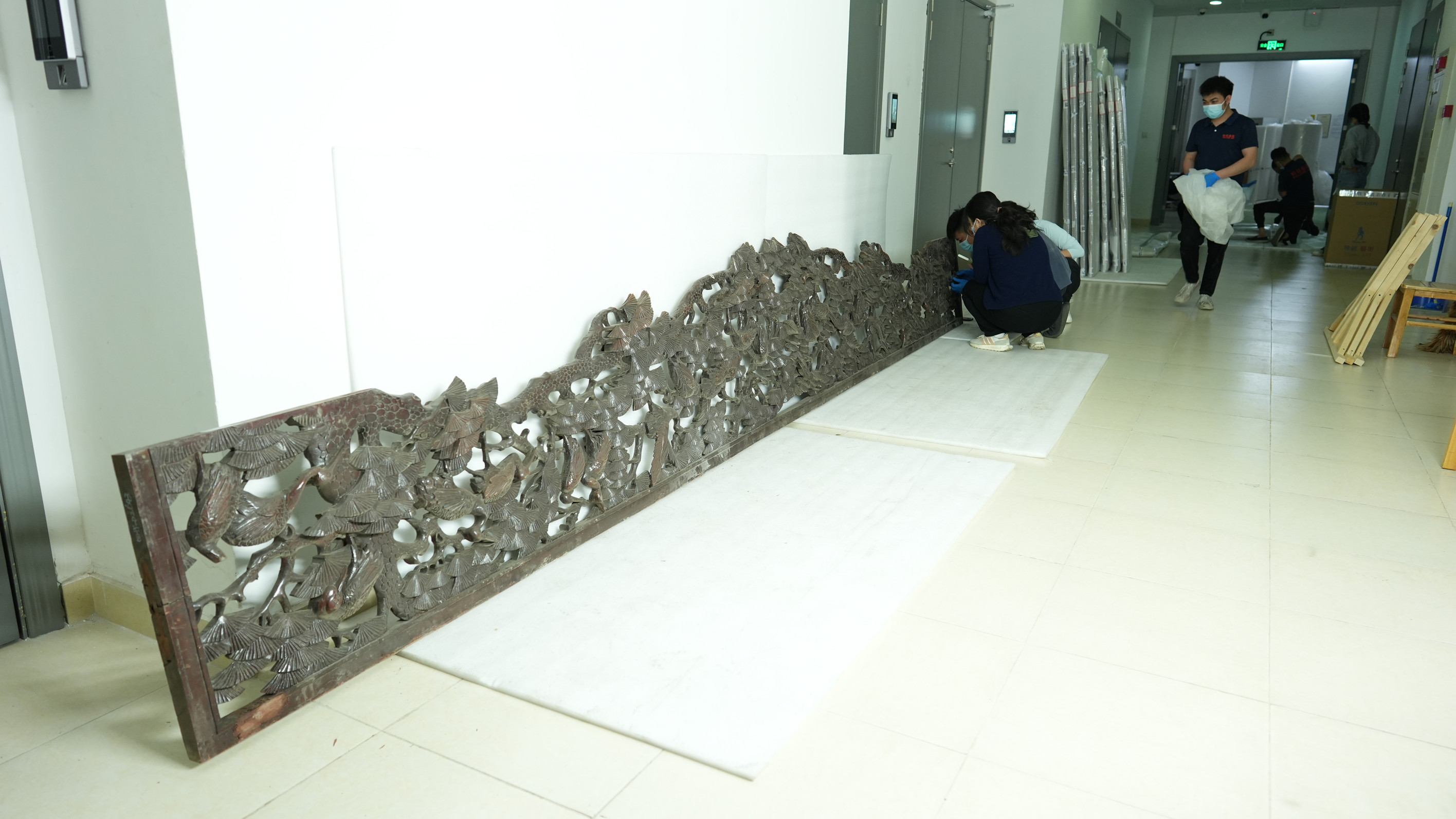 名称:当代木雕挂落 年代:当代 质地:木 尺寸:长529,宽75,厚6