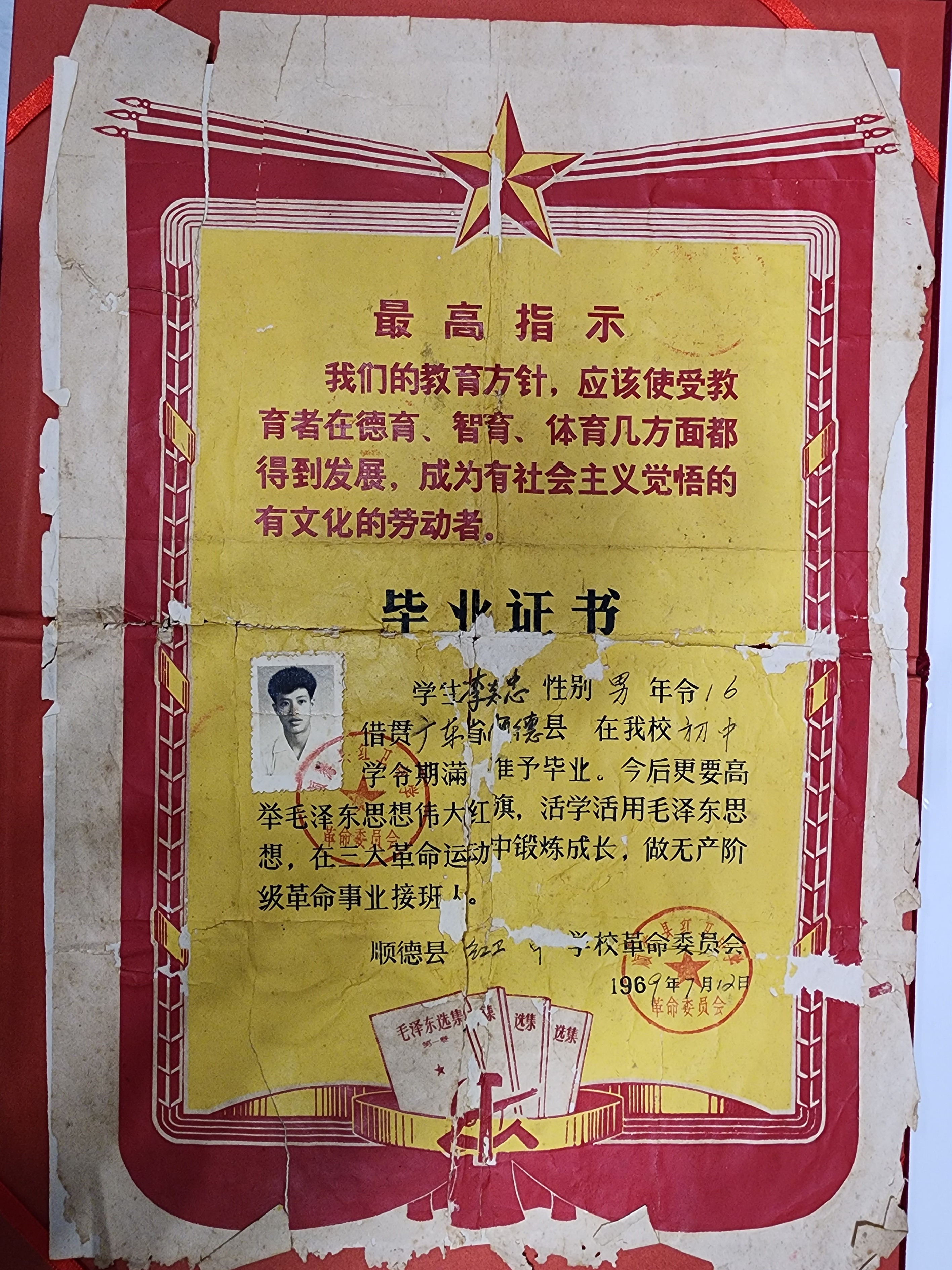 名称:1969年李炎忠先生红卫中学毕业证书 年代:1969年 质地:纸 尺寸:26.7cm×38.6cm