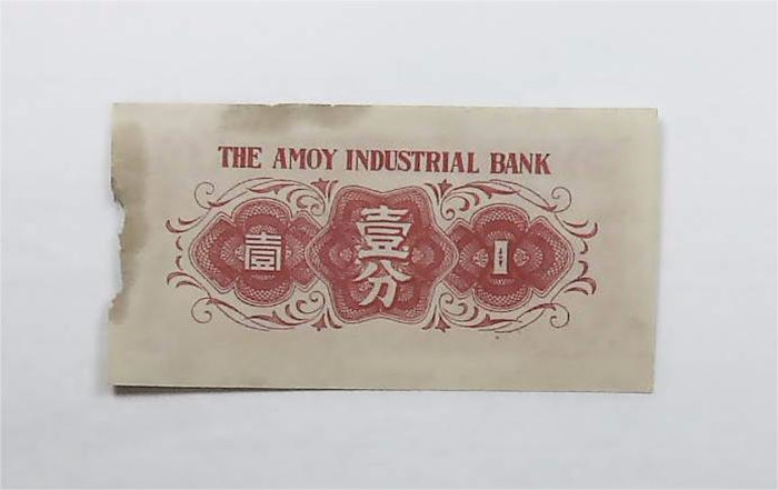 名称:厦门劝业银行印发壹分纸币 年代:中华民国 质地:纸 尺寸:7.9cm×4.1cm