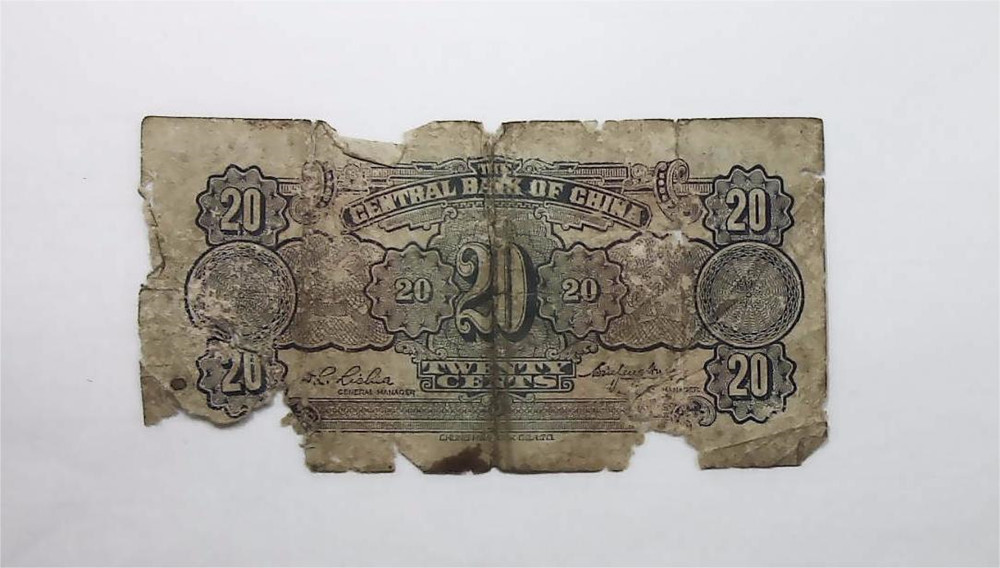名称:中央银行贰角纸币 年代:中华民国 质地:纸 尺寸:12cm×6.2cm