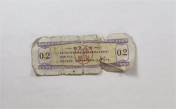 名称:1980年广州市专用粮票弍市两 年代:1980年 质地:纸 尺寸:6.5cm×2.4cm