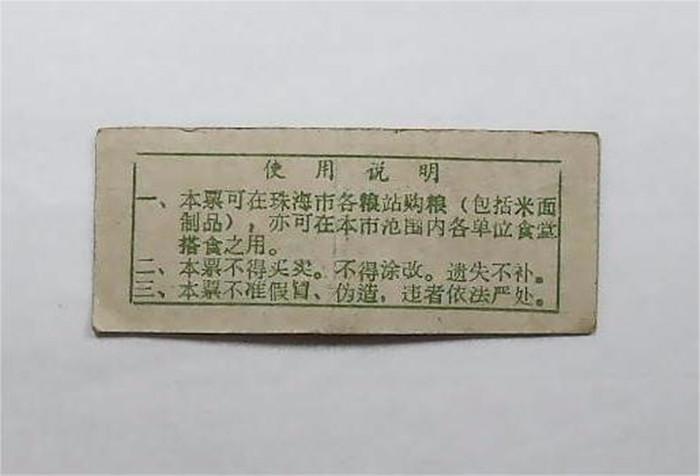 名称:1978年珠海工种粮票壹市两 年代:1978年 质地:纸 尺寸:7.2cm×2.9cm