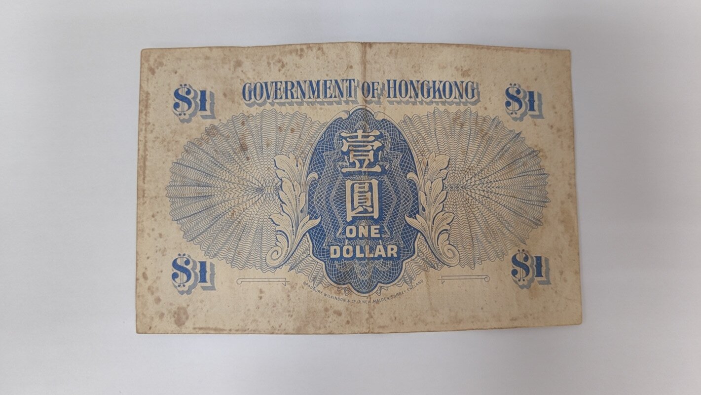 名称:1945年香港政府壹圆纸币 年代:1945年 质地:纸 尺寸:12.5cm×7.9cm
