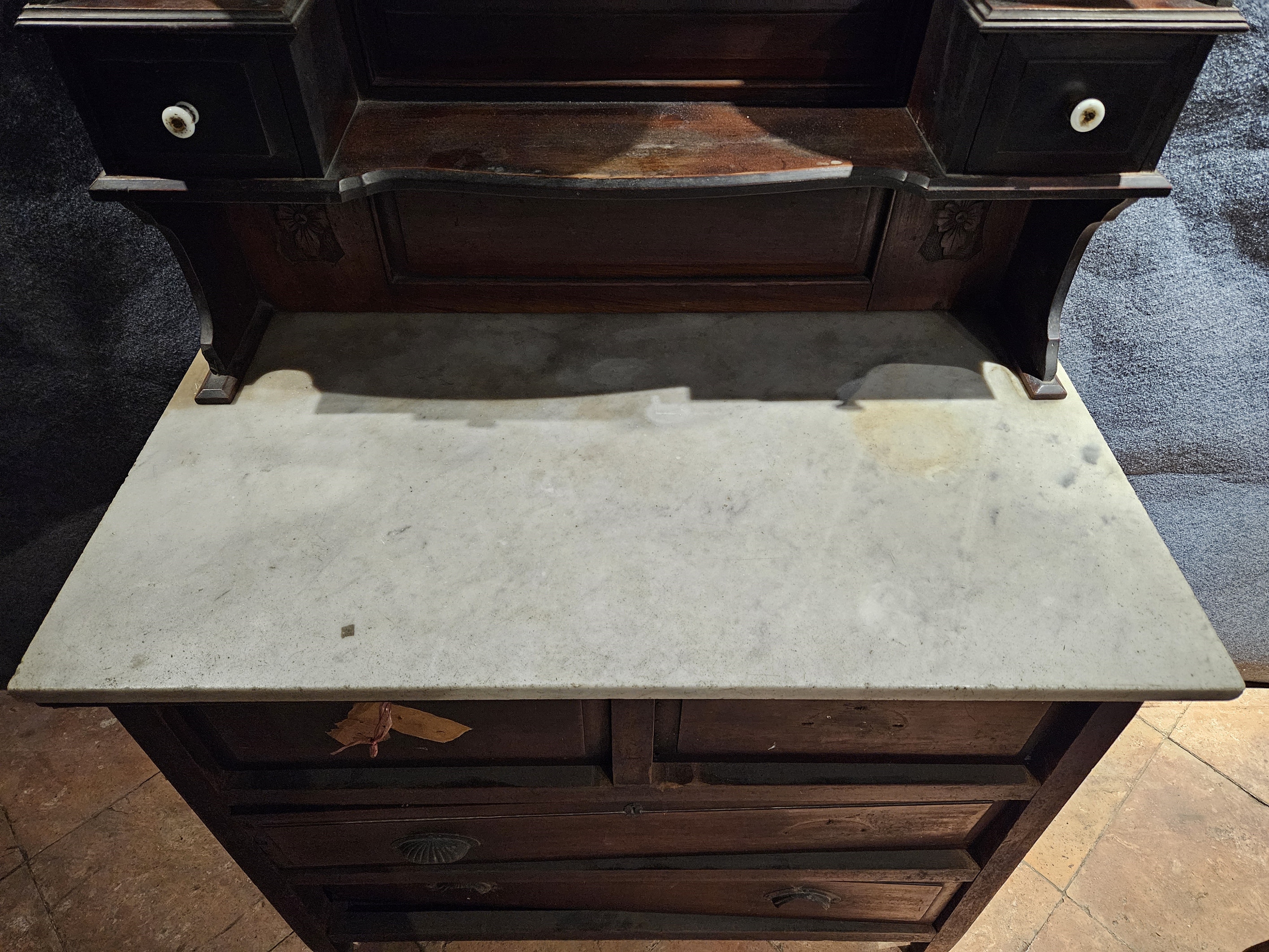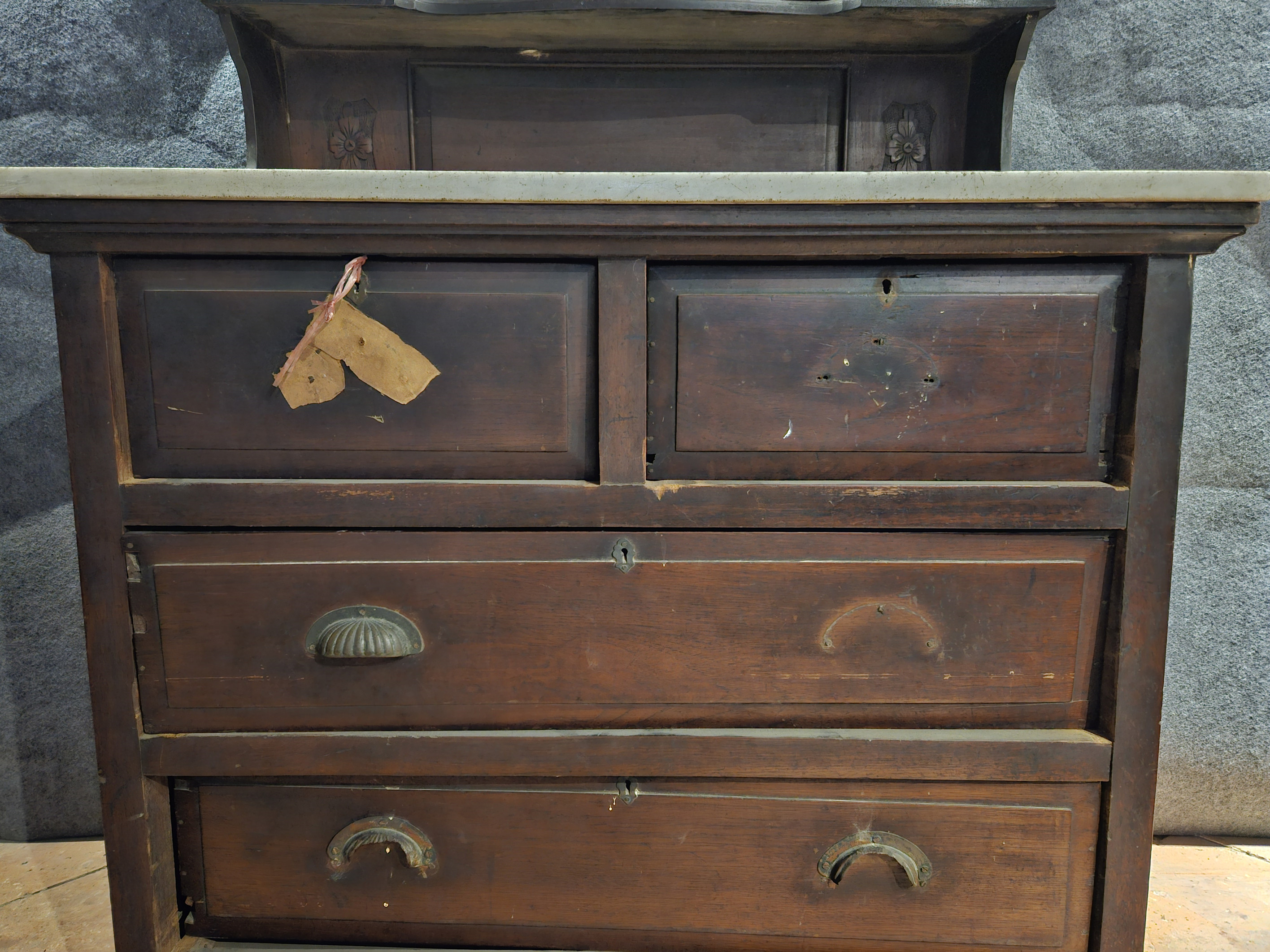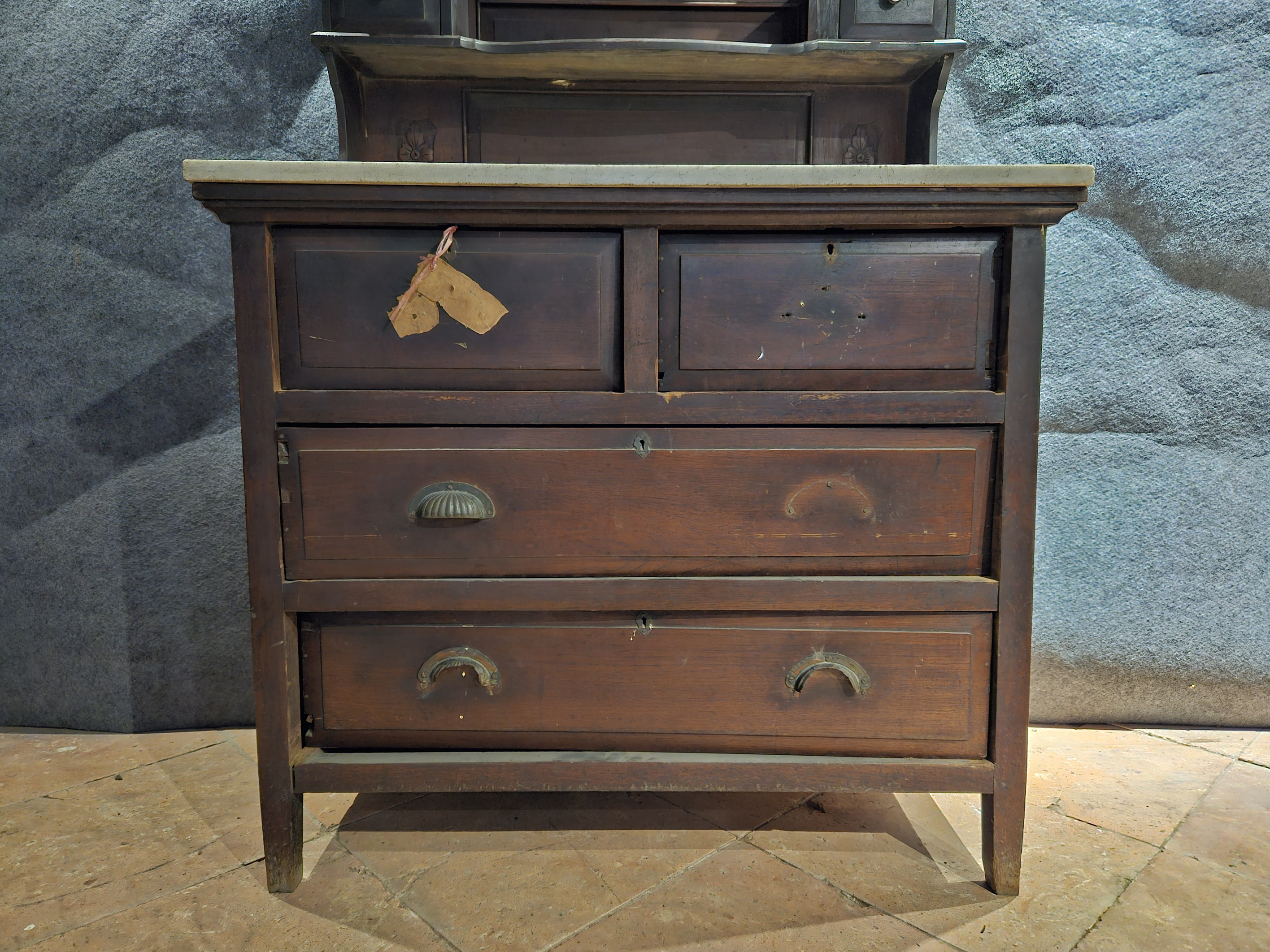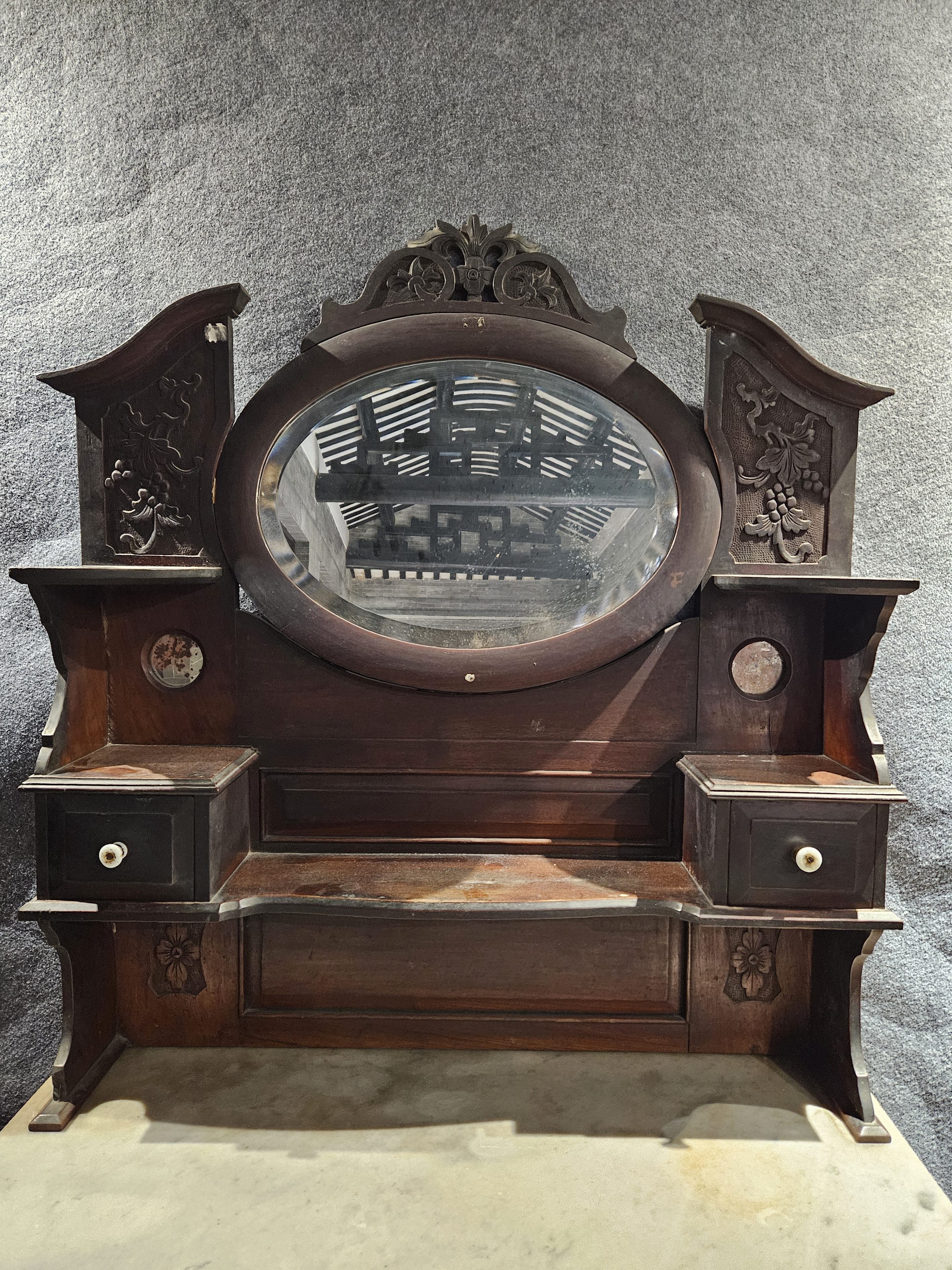 名称:中华民国柚木梳妆台 年代:中华民国 质地:木、石 玻璃 尺寸:通长:92 通宽:52 通高:181