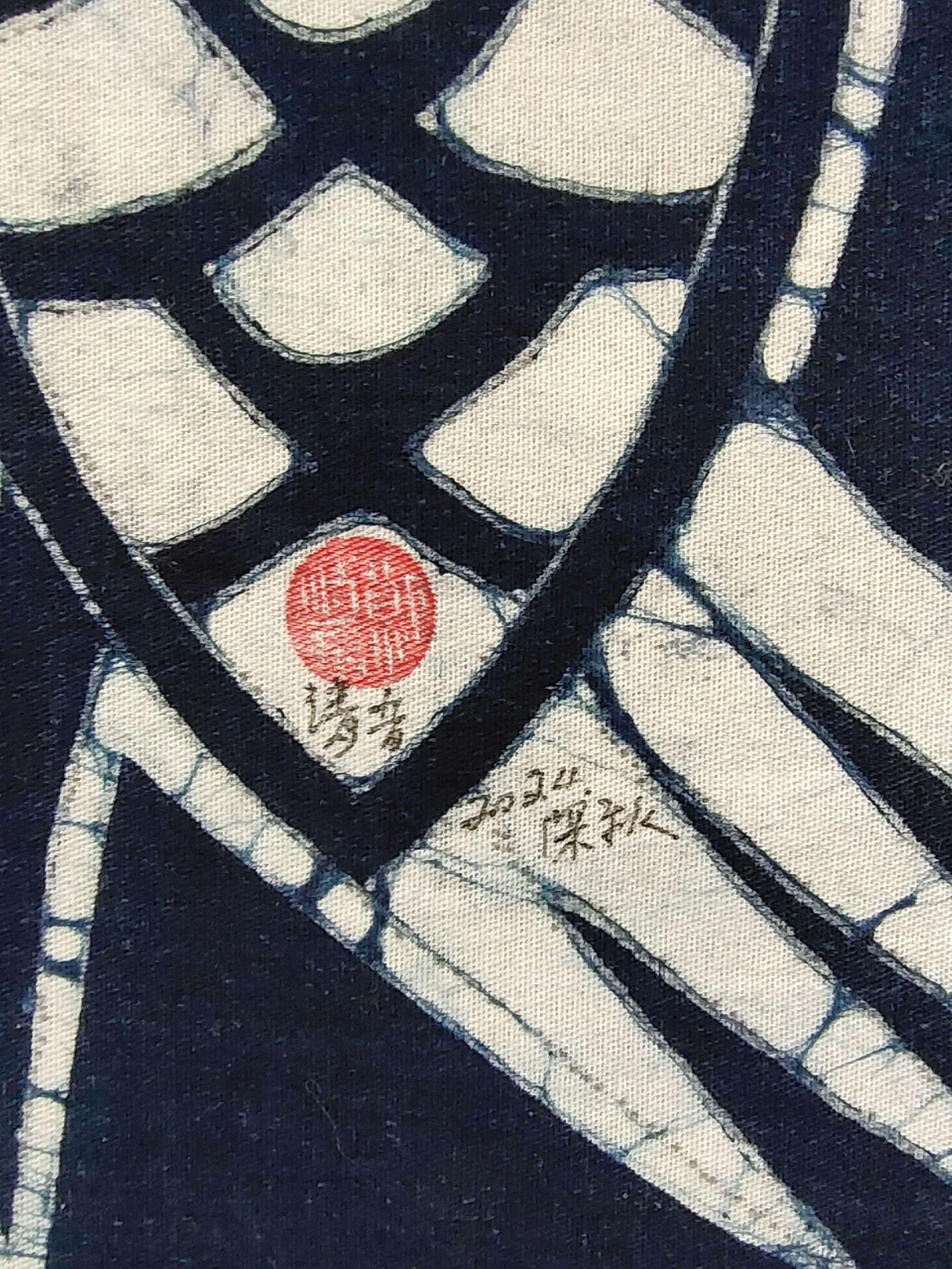 名称:苗族蜡染作品《吉宇鸟》 年代:当代 质地:布 尺寸:56.5×53