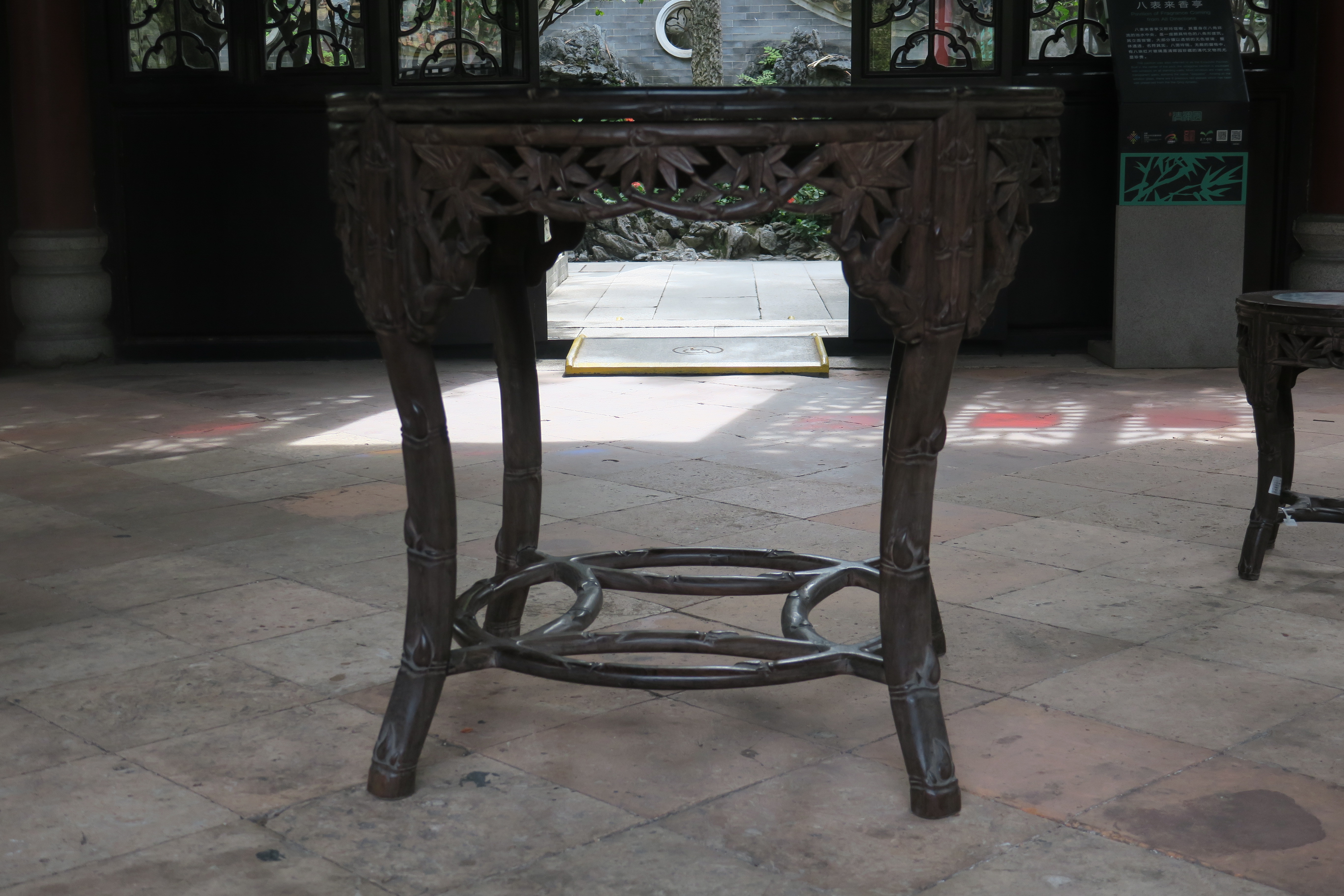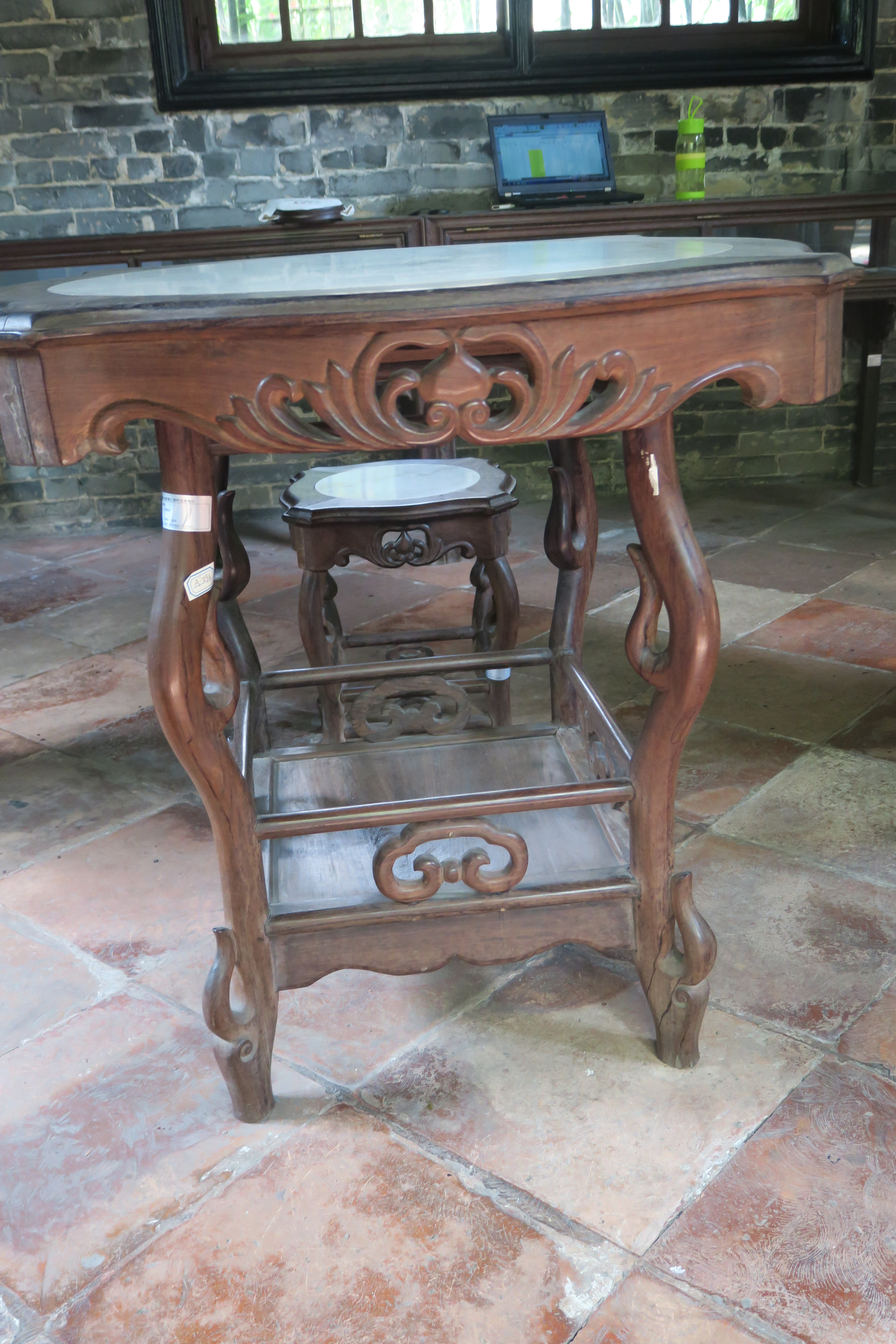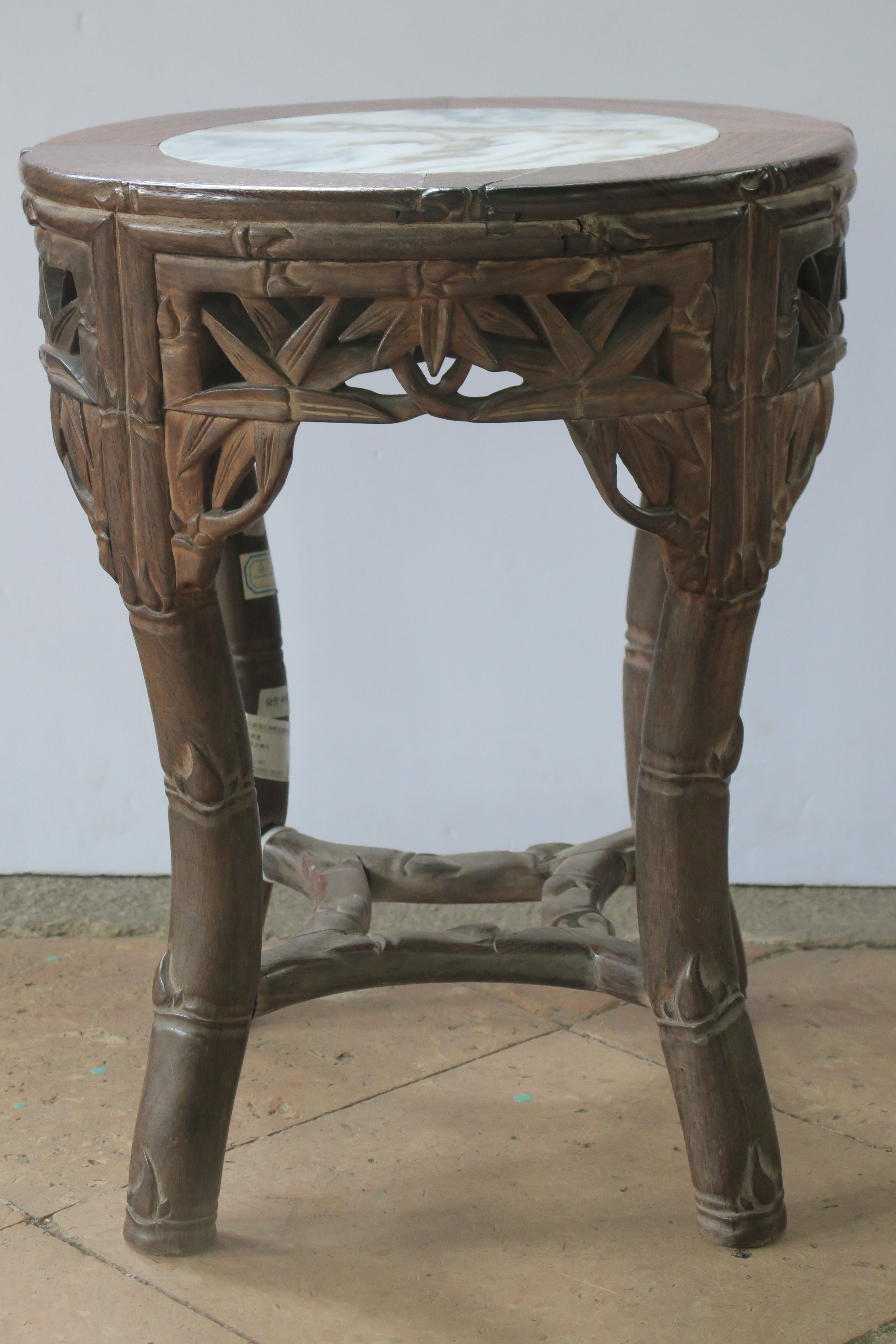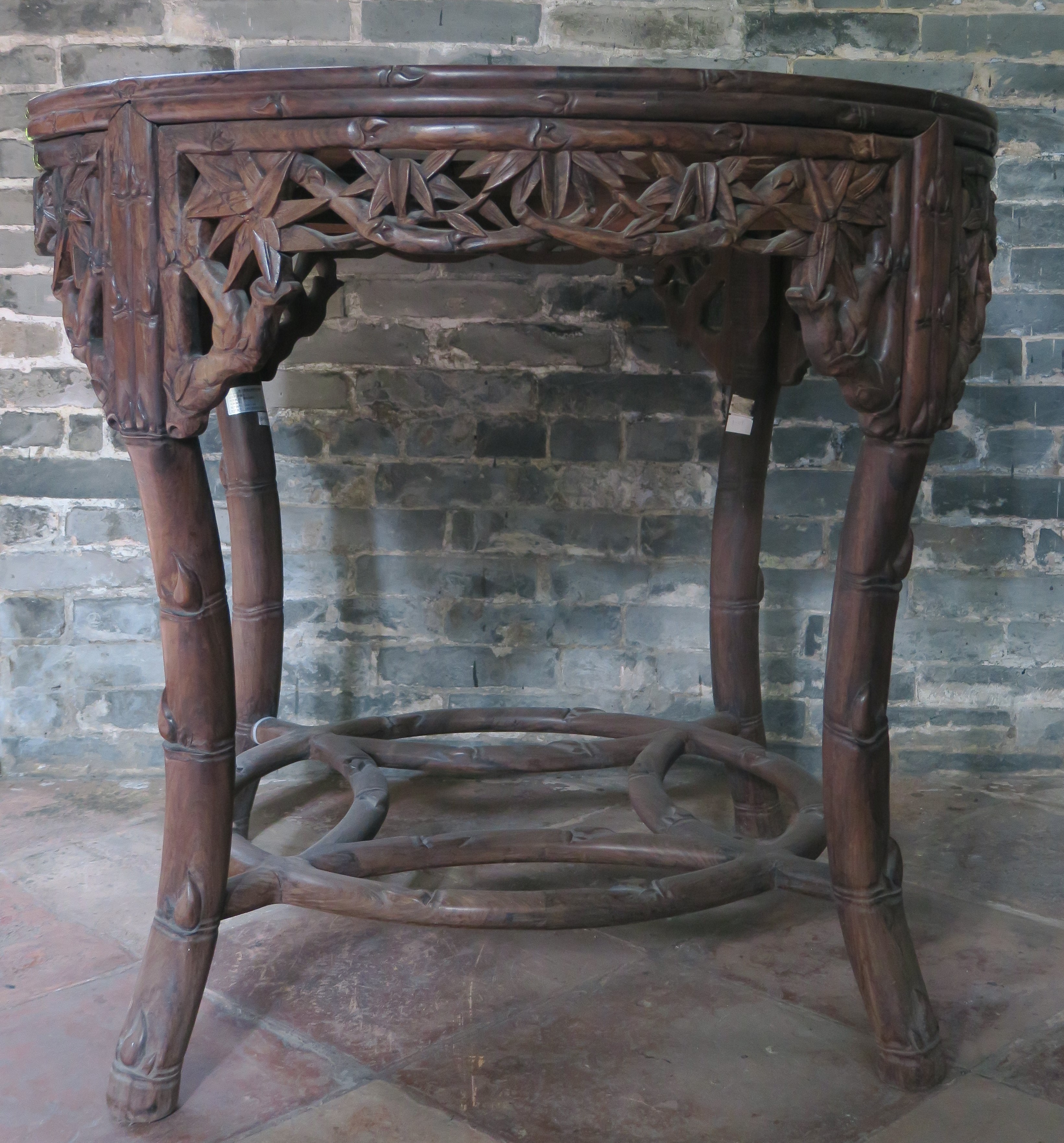 当代红木镶石雕花圆台