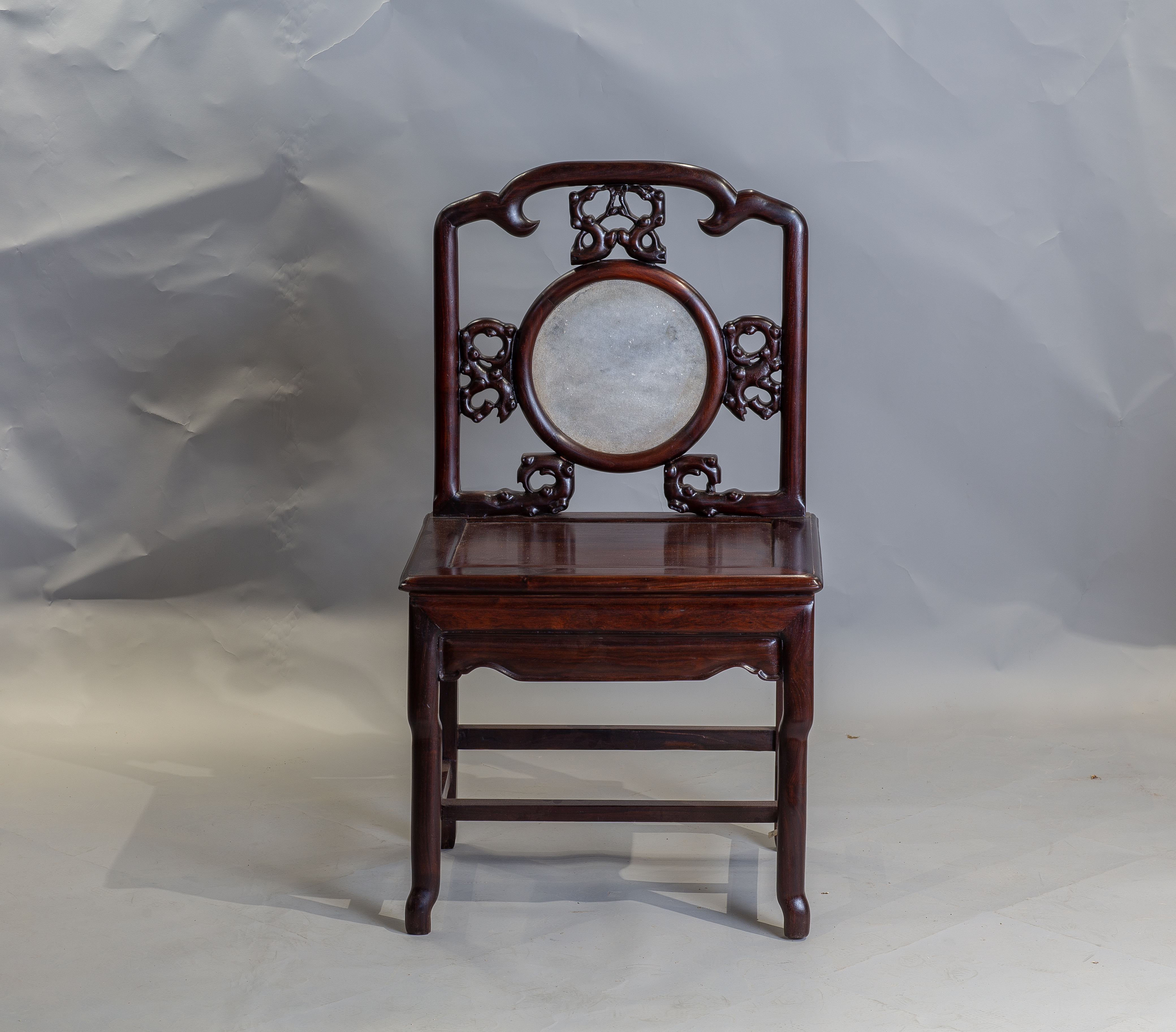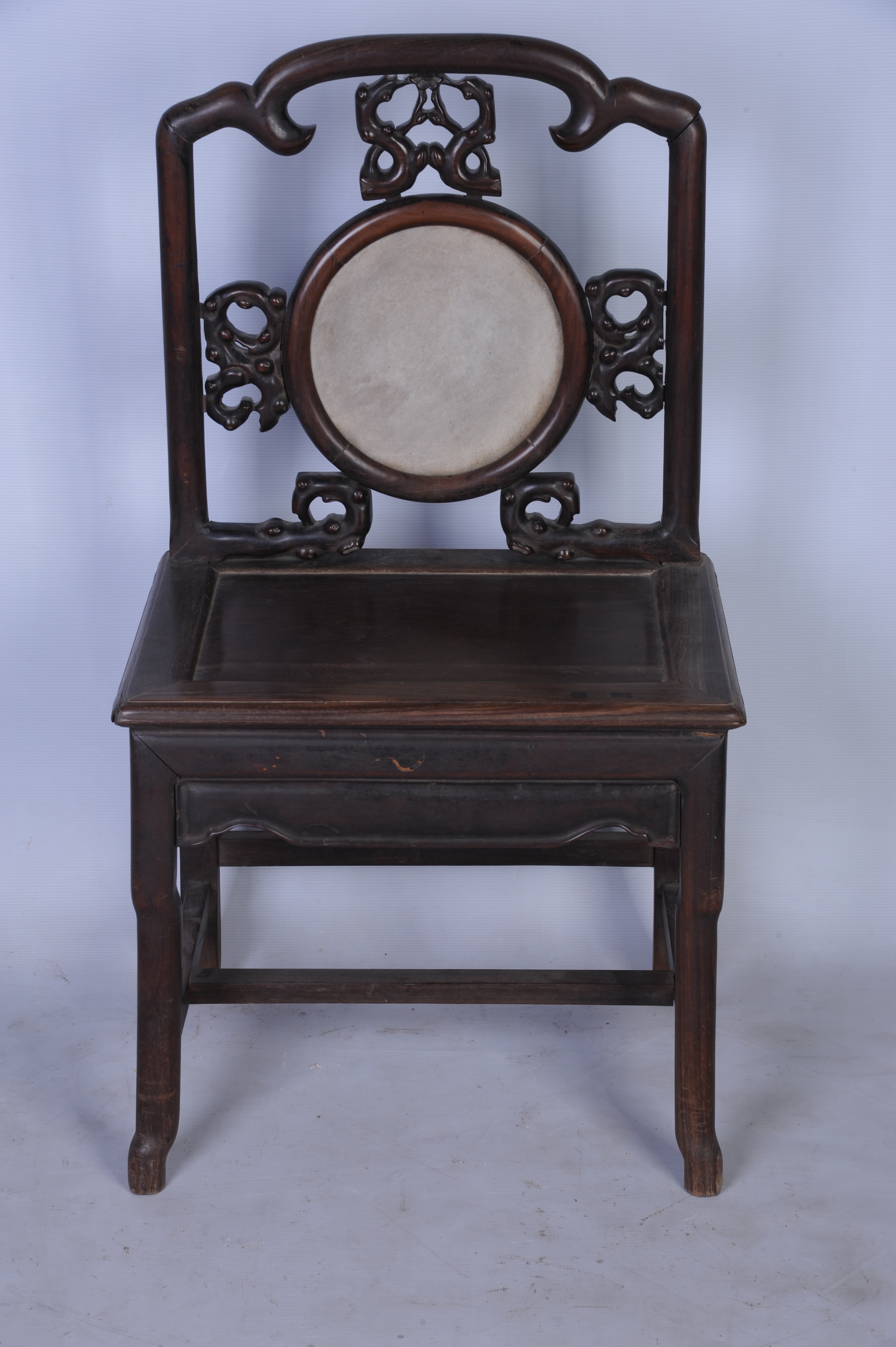 清末酸枝镶石靠背椅