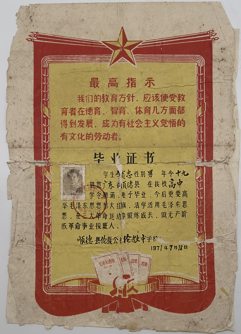 1971年李炎忠先生伦教中学毕业...