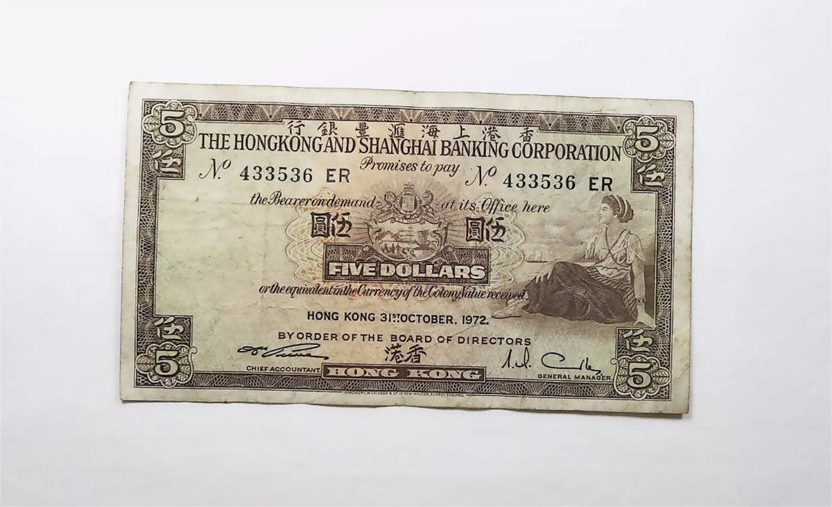 1972年香港上海汇丰银行印发伍...