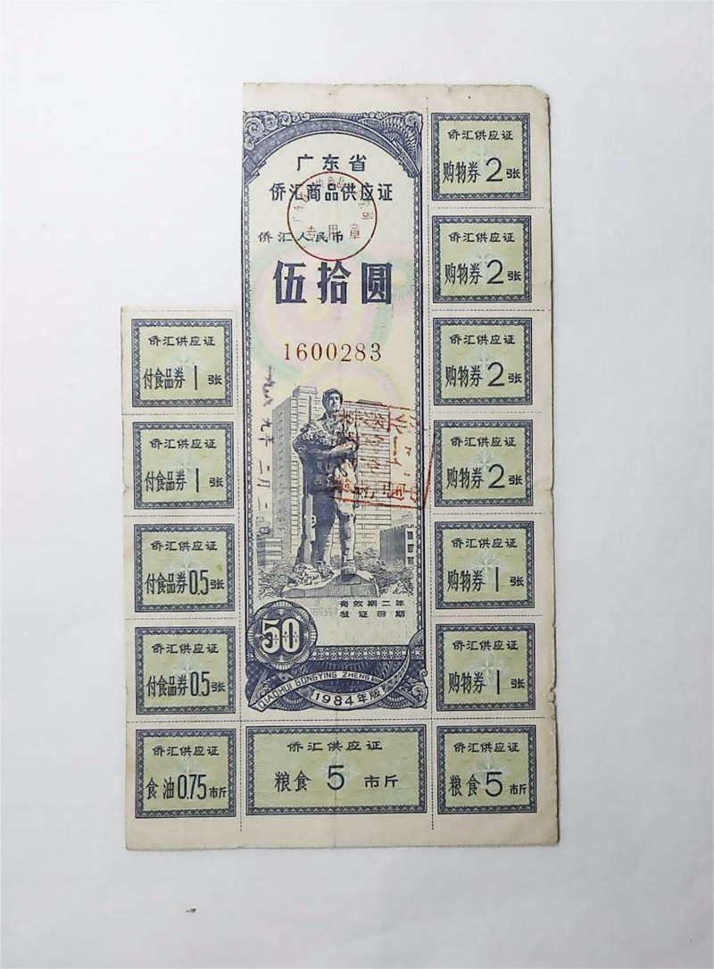 1984年广东省侨汇商品供应证伍...