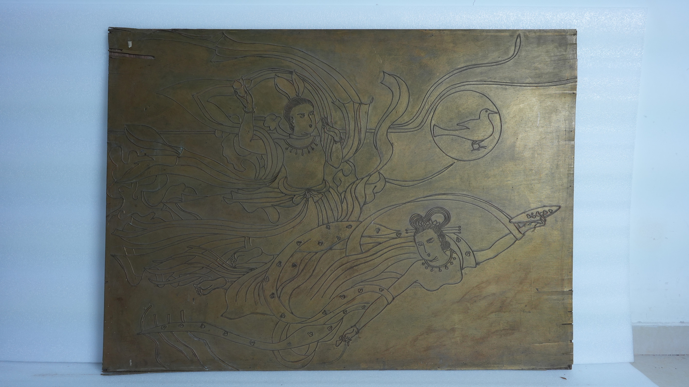 当代方形铜雕线画